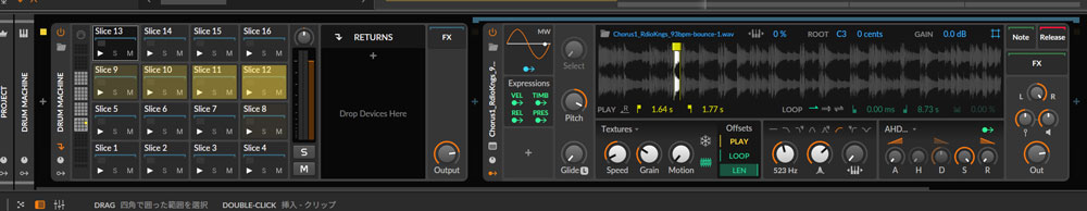 ラジオキングのキットのドラムサンプルを読み込んで自動チョキチョキしたス