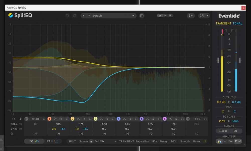 方向は「MIX時にベースやギターの低音のために空けときたいローミッドの長さを短く」なんスけど、普段はMIXしながら(他のトラックと一緒に聞きながら)使うツールなので、だいぶ難しかったス