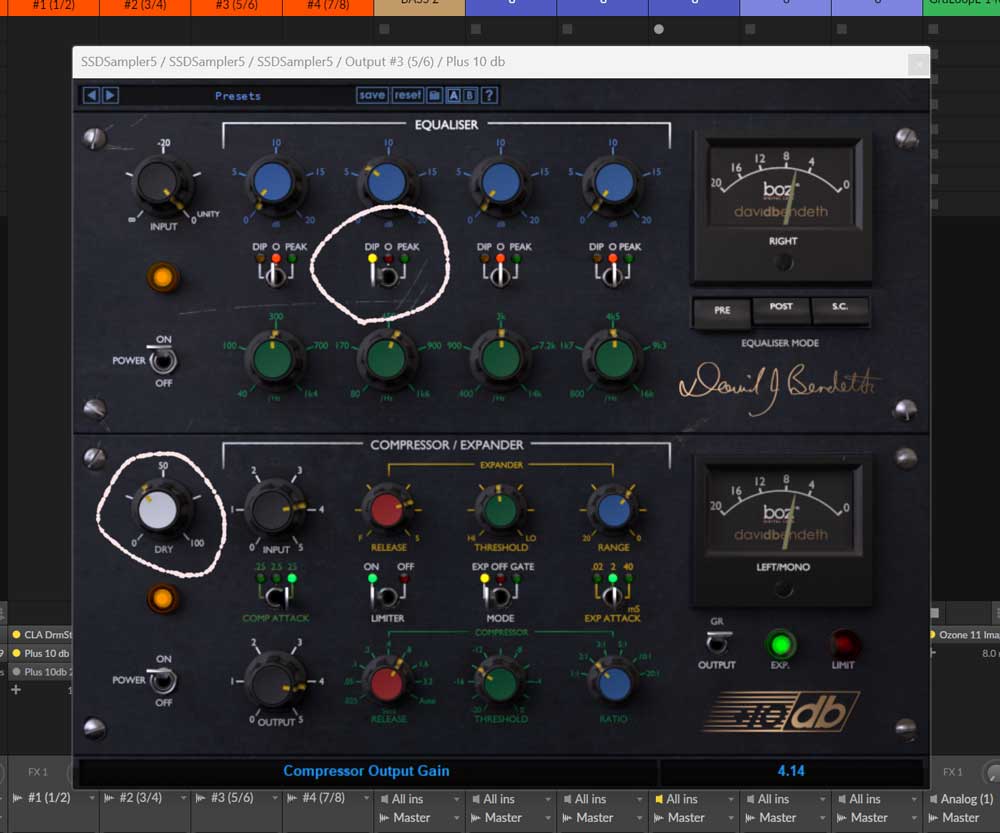 あとEQのブースト・オフ・ディップ切り替えスイッチもオンオフになっちゃってたので、従来の「触りたいポイントを探って増減の値を決めるだけ」っていうのはできなくなっちゃったス
