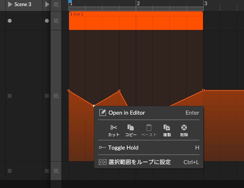 オートメーションの頂点を選んでる時に”H”を押すと、次のポイントまで値が横ばい