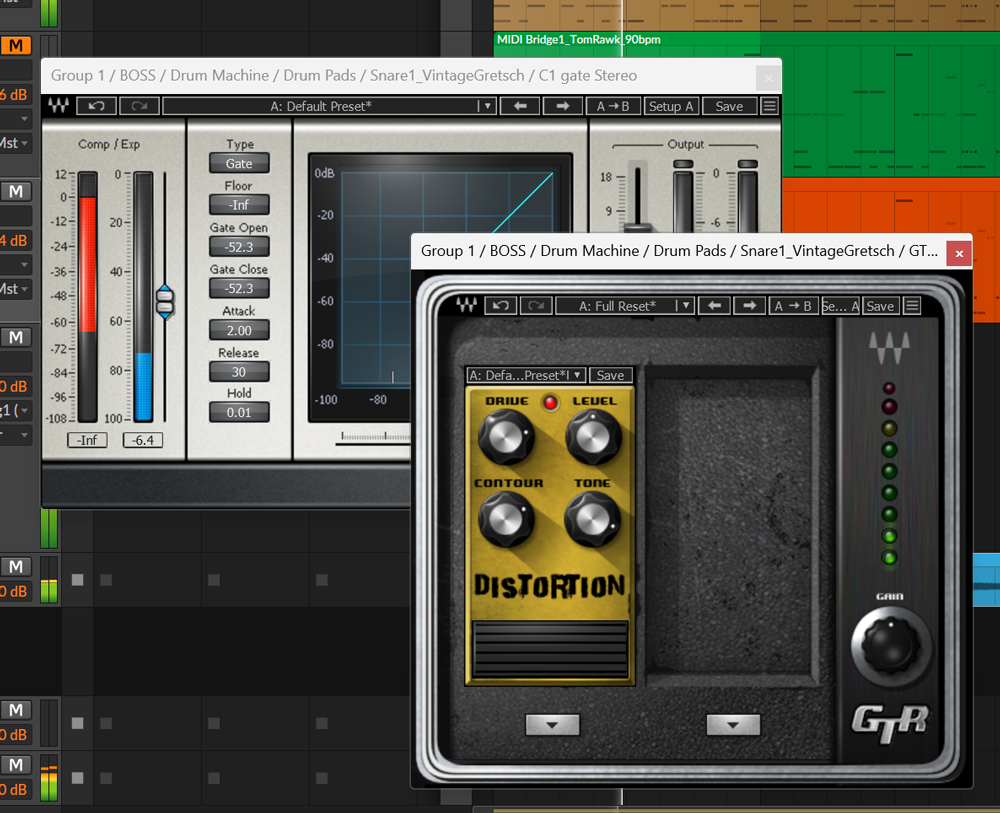 2味めはスネアをパラって片方を遅らせて位相ズレ歪みを得る方法 エキサイター的な考え方なんやな